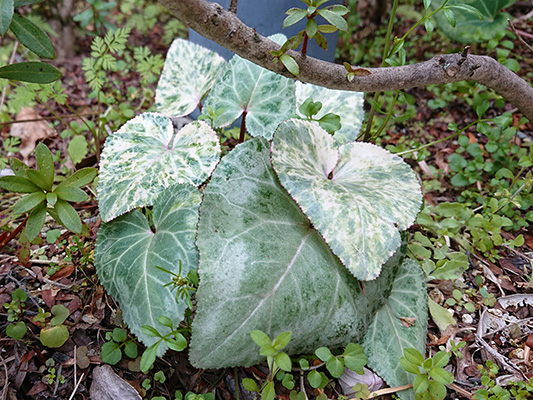 園芸種シクラメン,原シクでもペルシカムは葉っぱがデカッ!ですね.原シク・パレットの中にペルシカムが居ればその違和感は半端ないです.(^o^)